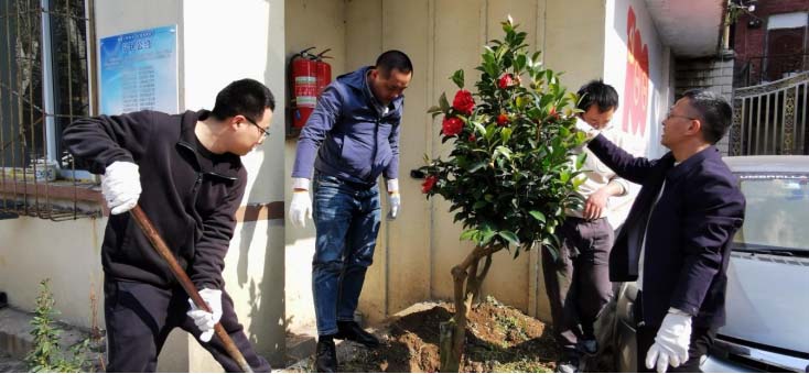 活动现场,在田娟同志的带领下,大家手拿锄头、山茶花树,按照之前划定的植树范围有序开展植树活动。活动中,青年同志们充分发扬吃苦耐劳的优良作风,分组修整枯枝腐叶、垃圾清理、淋水施肥,大家相互协作,从挥锄挖土,挖坑整地,到移栽树苗,扶正压实,舀水定根,各道工序一丝不苟,整个植树活动现场呈现一派热火朝天的劳动景象。
