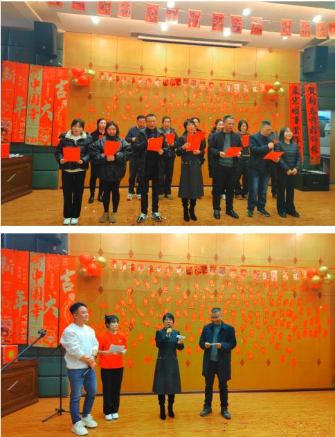 随后,年会文艺表演活动有序开展,激动人心的抽奖环节贯穿全程,精心准备的礼品丰厚,有充满活力的舞蹈、动听的歌曲和激昂奋进的诗朗诵,台上台下一片欢腾。舞台之上,节目演出精彩纷呈,展现非凡才艺与活力。各种有趣的游戏和互动环节,大家都感受到了新年的快乐,可谓是年味十足。