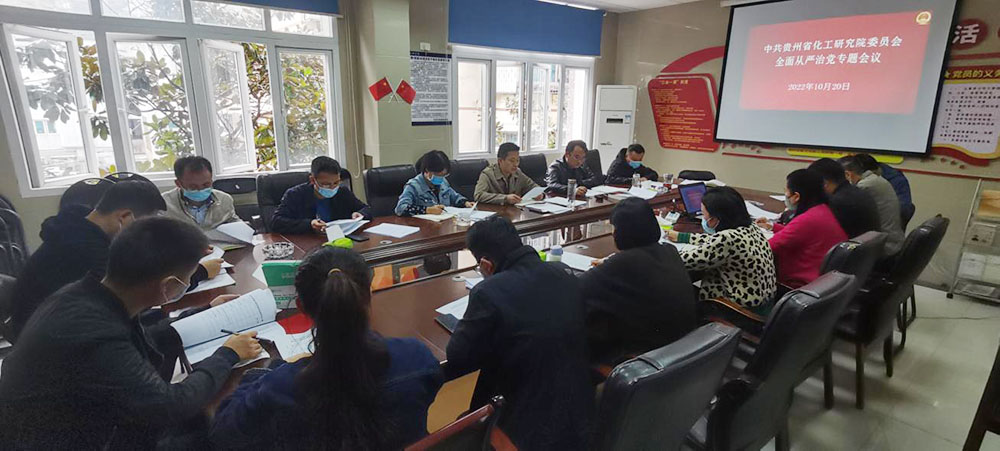 10月20日下午14:40,化工院组织全体在职党支部支委召开2022年全面从严治党专题会议,总结2022年全面从严治党工作成效,加强全院党风廉政建设,贯彻全面从严治党战略部署。