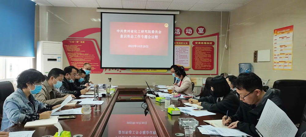 10月20日上午10:40,化工院召开2022年下半年意识形态专题会议,就化工院2022年意识形态工作做汇报、回头看。本次专题会由化工院党委书记李文翥同志主持,各部门主要负责人、各党支部代表参会。