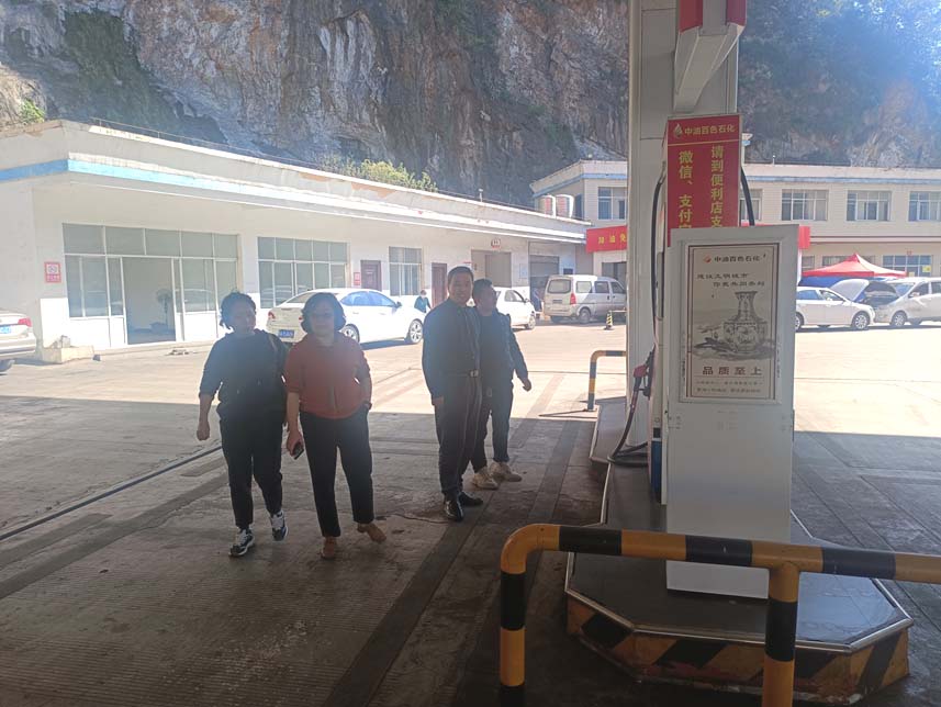 盘州市优能隆旺加油站有限公司位于贵州省六盘水市盘州市石桥镇核桃山村,该加油站主要经营0#柴油和92#汽油,设站内有8台潜油泵式双枪加油机,储油罐4个,其中0#柴油油罐30m3二个;92#汽油油罐30m3二个,总储量90m³(柴油折半计算),汽油最大单罐容积为30m³,柴油最大单罐容积为30m³,属三级加油站。 加油站坐东朝西,加油站油罐区北面有民用建筑(三类建筑物),相距油罐区最近的柴油罐约26m,汽油罐约28.9m;加油站西面为红威公路,该公路相距加油机约为12.5m,相距油罐区最近的柴油罐约39.6m,汽油罐约46.9m;南面和东面均为山地。加油站周边50m范围内无重要公共建筑物及甲、乙类物品生产厂房,站区范围内无架空电力线和通讯线跨越。东面、南面和北面设有高于2.2m的非燃烧实体围墙与周边环境隔开。符合《汽车加油加气加氢站技术标准》(GB50156-2021)的要求。 |