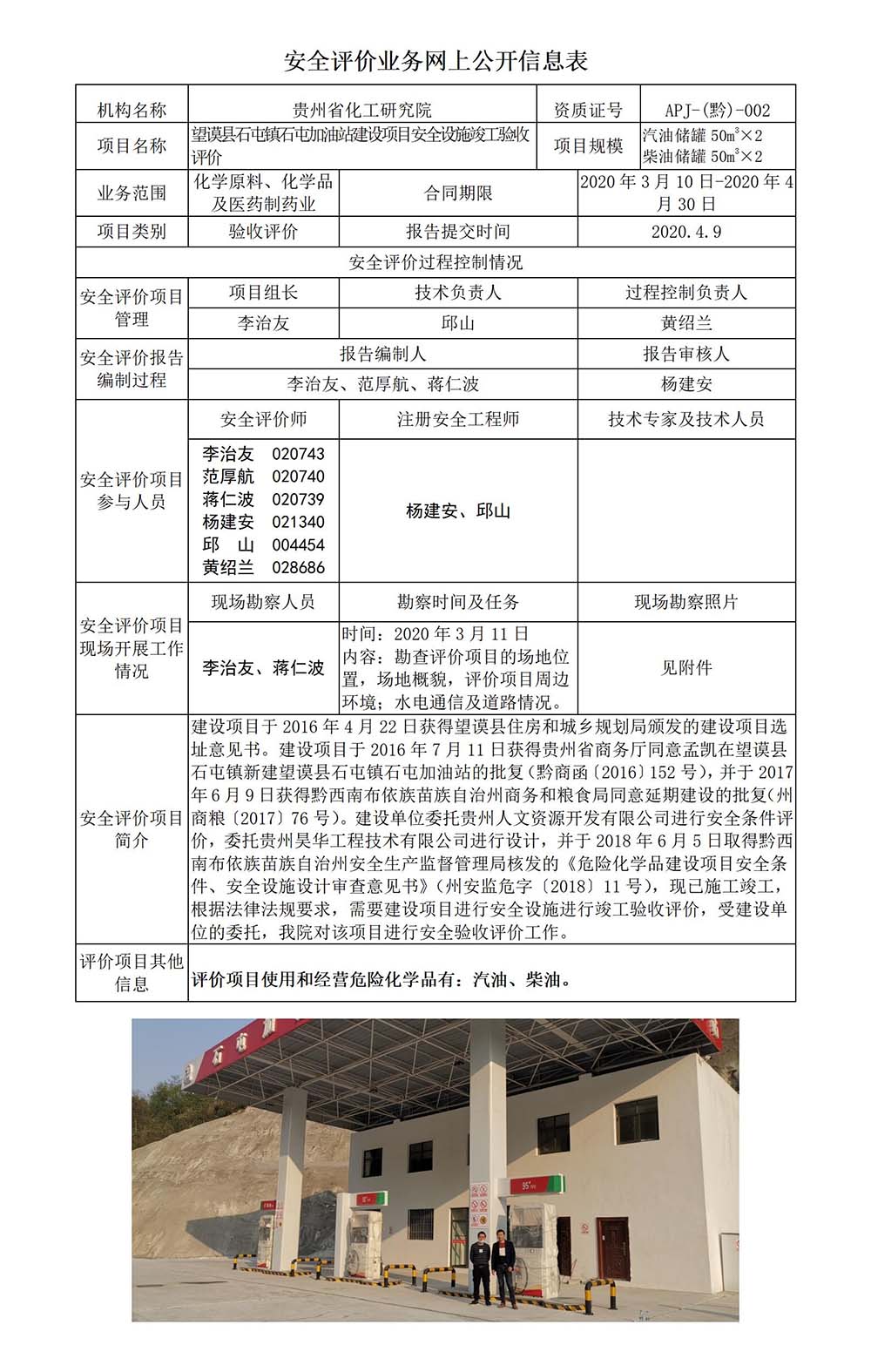望谟县石屯镇石屯加油站建设项目安全设施竣工验收评价