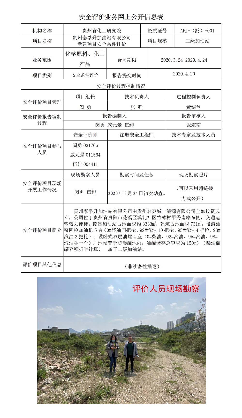 贵州泰孚升加油站有限公司 新建项目安全条件评价
