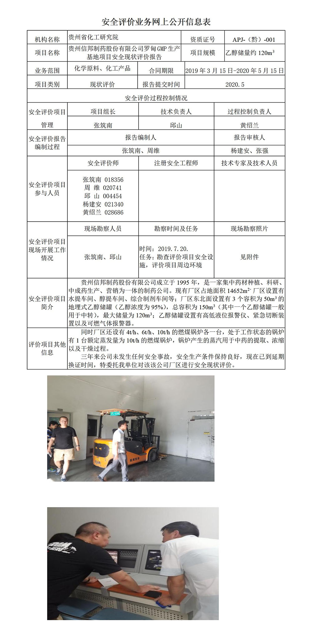 贵州信邦制药股份有限公司罗甸GMP生产基地项目安全现状评价报告