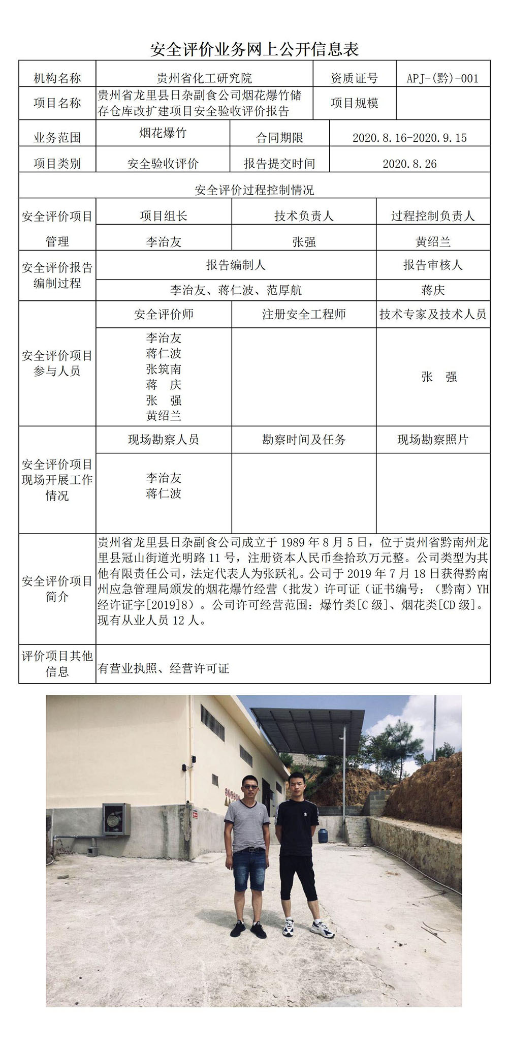 贵州省龙里县日杂副食公司烟花爆竹储存仓库改扩建项目安全验收评价报告