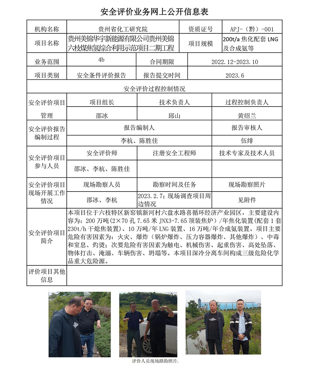 贵州美锦华宇新能源有限公司贵州美锦六枝煤焦氢综合利用示范项目二期工程