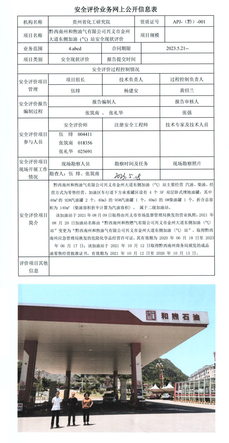 黔西南州和煦油气有限公司兴义市金州大道东侧加油(气)站安全现状评价