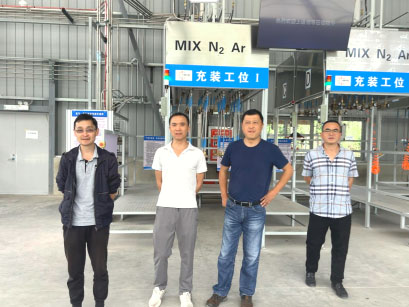 氧气、氮气、氩气、液态二氧化碳及混合气充装线、液态杜瓦瓶充装线各一条。设置6个低温储罐(2个容积50m³液氧储罐、2个容积50m³二氧化碳储罐、1个容积50m³的液氮储罐、1个容积为50m³液氩储罐),氧气(医用氧、工业氧)、氩气及氮气3种气体的充装设施及液态二氧化碳(食品级、工业级)的液态充装设施、混合气体充装设施及杜瓦瓶充装设施、气瓶自检设施、医用氧质量分析设施,同时设维修车间(内含值班室、发配电间、危废间及消防控制室)、办公楼(内设控制室)、罐区。 |