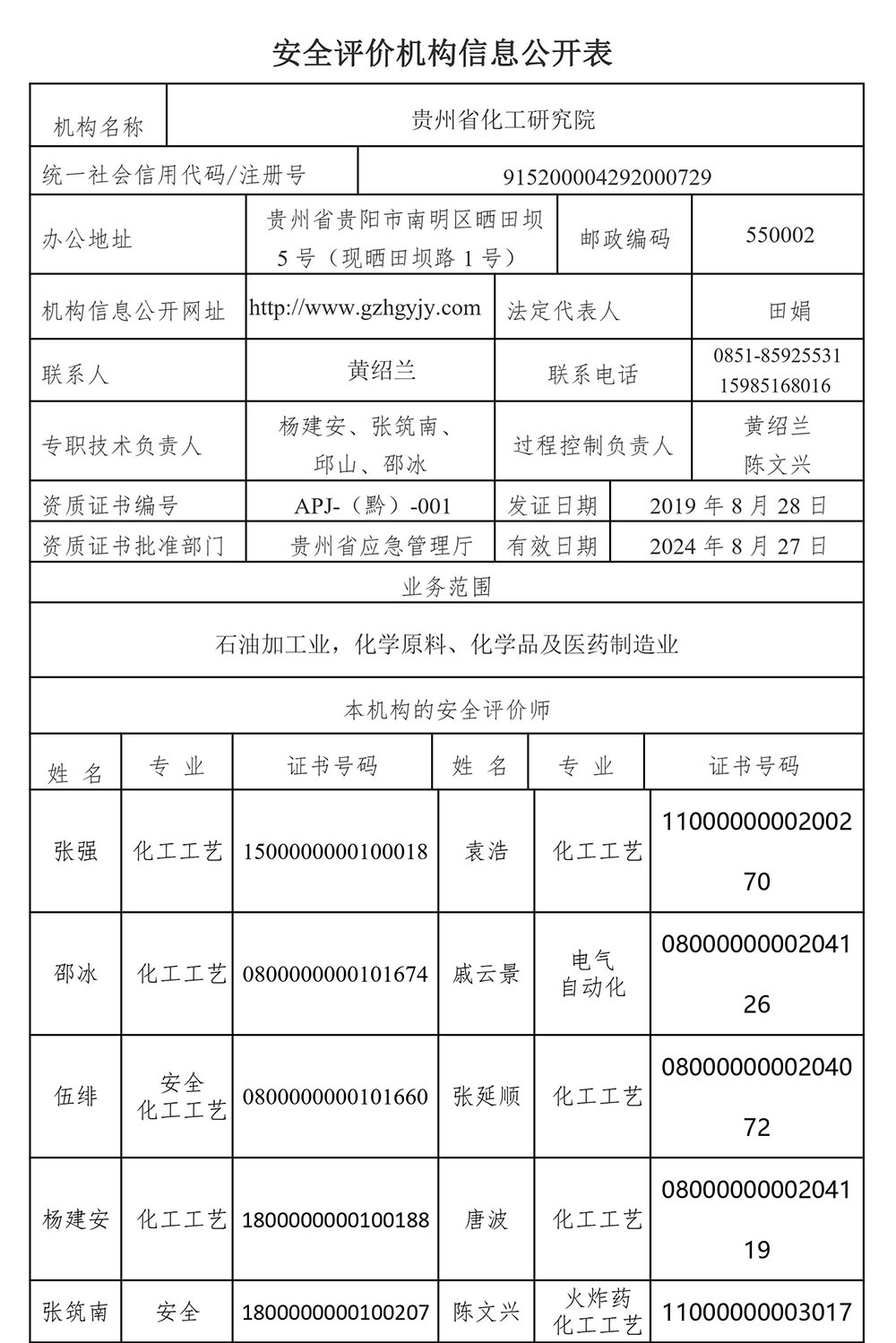 安全评价机构信息公开表(2023年)